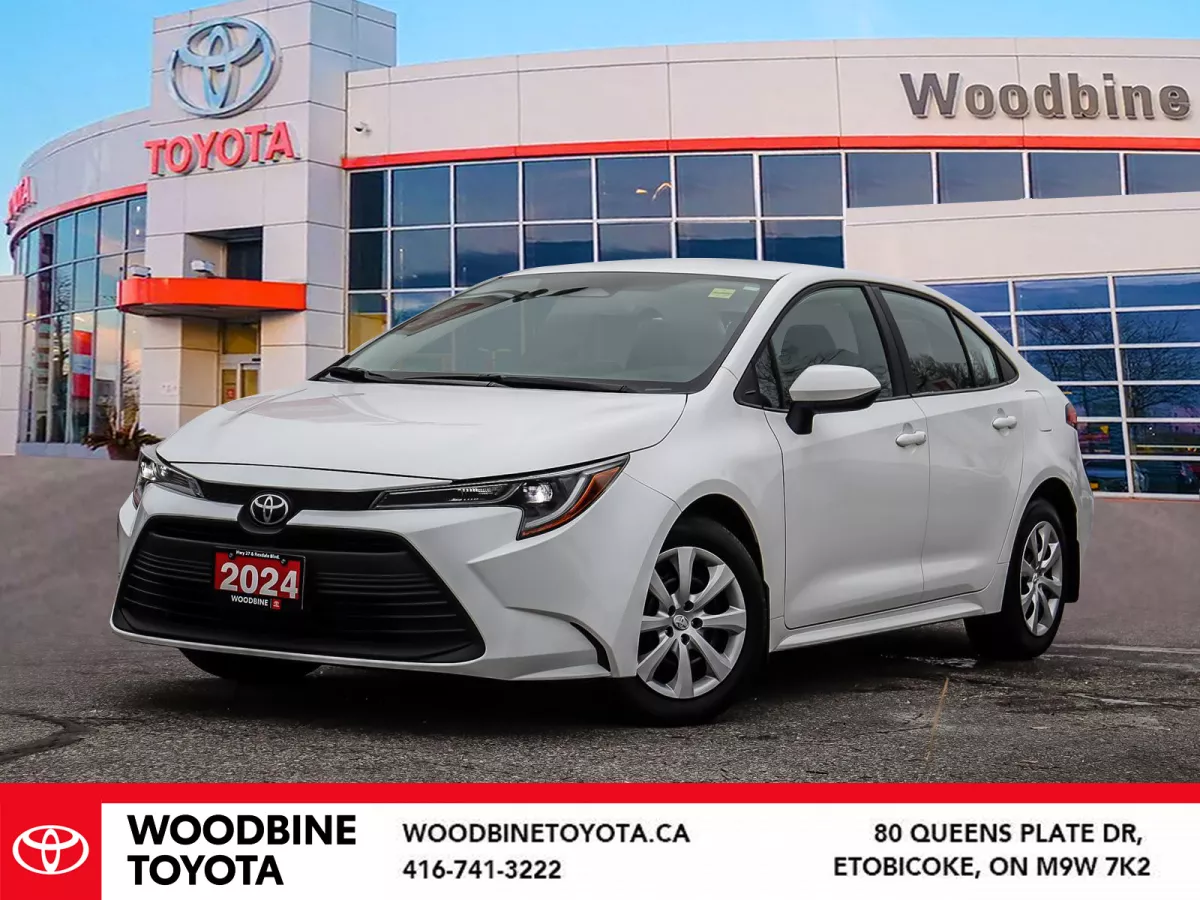 Discover reliability, efficiency, and modern technology with this 2024 Toyota Corolla LE, now available at Woodbine Toyota in the Greater Toronto Area. As a Toyota Certified Used Vehicle, this Corolla has passed a rigorous 160+ point inspection, includes 7-year/160,000 km powertrain warranty, 1 year of Toyota Roadside Assistance, and a clean CARFAX history—buy with confidence.